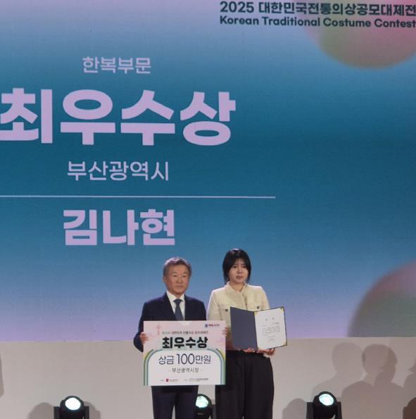 [뉴스서치] 경상국립대학교 자연과학대학 의류학과 4학년 김나현 학생이 부산광역시가 주최하고 (사)부산섬유패션산업연합회가 주관한 ‘제26회 대한민국 전통의상 공모대제전’에서 한복 부문 창작 분야 최우수상(부산광역시장상, 상금 100만 원)을 수상했다.