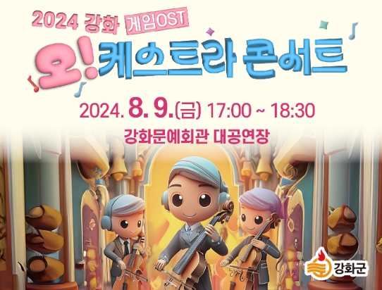 [뉴스서치] 강화군이'2024년 게임 OST 오케스트라 공연'을 오는 9일 오후 5시부터 강화문예회관에서 개최한다고 밝혔다
