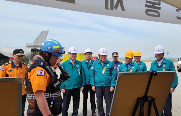 이번 훈련은 인천국제공항 내 활주로에서 착륙 중이던 항공기가 순간 돌풍으로 인해 지상에 있던 버스와 추돌한 상황을 가정, 다수 사상자 발생과 항공기 화재·폭발 등의 복합재난을 주제로 진행됐다.