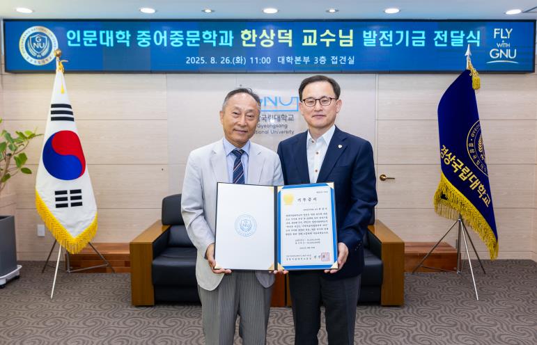 경상국립대학교 국제처는 8월 26일 오전 11시 대학본부 3층 접견실에서 ‘중어중문학과 한상덕 교수 발전기금 전달식’을 개최했다.