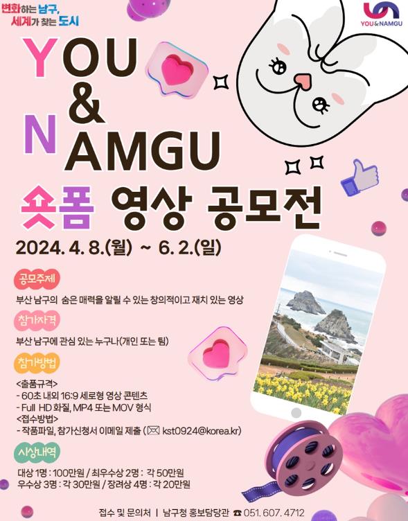 [뉴스서치] 부산 남구는 최신 SNS 트렌드를 반영한 남구 홍보 콘텐츠 발굴을 위해"YOU · NAMGU 숏폼 영상" 공모전을 개최한다.