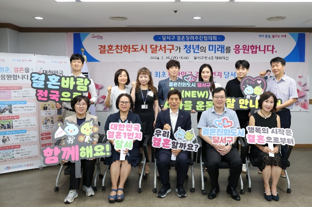 [뉴스서치] 대구 달서구 지난 26일 구청 4층 대회의실에서 인구위기 극복 및 청년을 응원하는 결혼친화사업 활성화를 위한‘달서구 결혼장려추진협의회’를 개최했다.