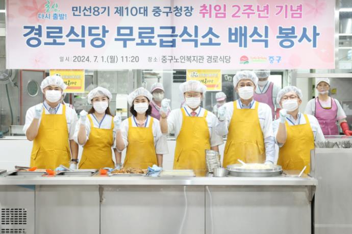 [뉴스서치] 김정헌 인천 중구청장이 취임 2주년을 맞이해 더 낮은 자세로 민생을 살피고자 지난 1일 중구노인복지관 경로식당에서 ‘무료급식소 배식 봉사’를 진행했다.
