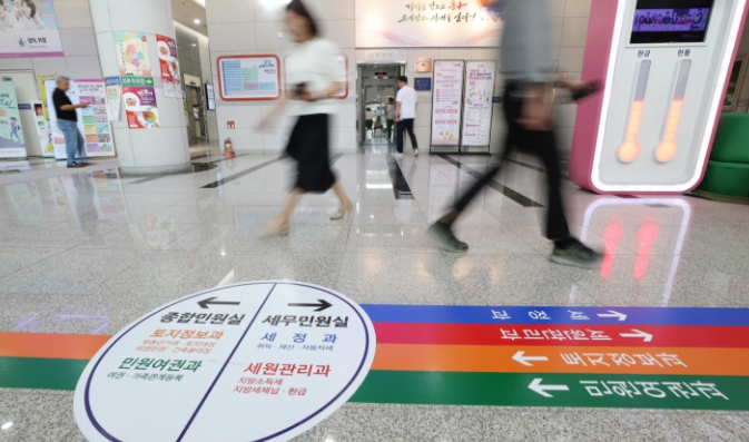 이에, 구는 민원인들이 주로 출입하는 청사 본관 정문(잔디광장 측), 청사 본관 후문(지상주차장 측)에 안내선을 표기, 동구 마크를 상징하는 빨강· 노랑·초록·파랑 4가지 색으로 1층에 있는 4개 민원 부서(민원여권과, 토지정보과, 세정과, 세원관리과)를 구분했다.