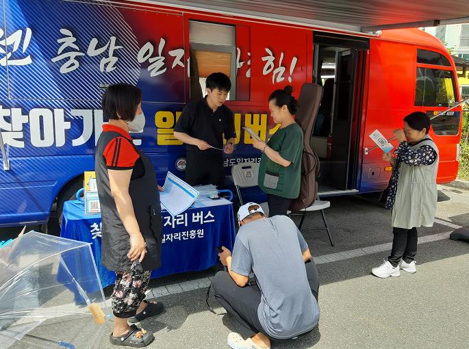 "찾아가는 일자리버스"는 (재)충남일자리경제진흥원과 연계하여 취업 사각지대 해소와 관내기업 매칭률 제고를 위한 현장 밀착형 취업지원 서비스로 유동 인구가 많은 관내 및 인접 시․군 등을 찾아가 맞춤형으로 일자리 상담을 진행한다.