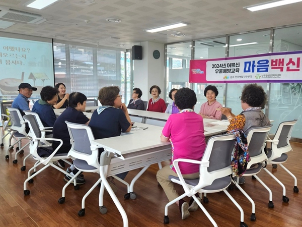 [뉴스서치] 부산 남구는 지난 3일 우암동복합청사에 위치한 남구 건강생활지원센터에서 어르신들의 정신건강 증진과 우울증 예방을 위한 어르신 우울예방교육 '마음백신'을 운영한다고 밝혔다.