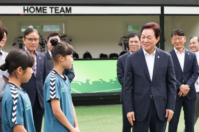 ▲ 진주여중 축구부 격려하는 박완수 도지사 |