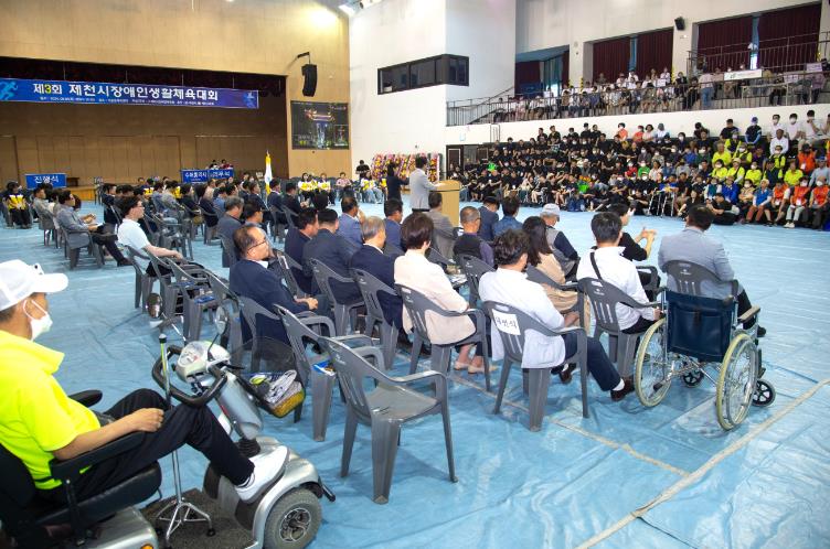 제천시장애인체육회 주관으로 진행된 이날 대회에는 김창규 제천시장, 박영기 제천시의회의장, 강성권 제천교육지원청교육장, 김태수 충청북도장애인체육회 사무처장 등 여러 내빈들이 참석했다.
