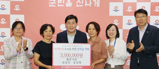 [뉴스서치] (재)옹진군인재육성재단은 지난 20일 영흥면 황토가든 송승민, 송강희 대표가 옹진군 도서지역 인재육성을 위해 삼백만원의 장학금을 기탁해옴에 따라 장학금 기탁식을 가졌다고 밝혔다.