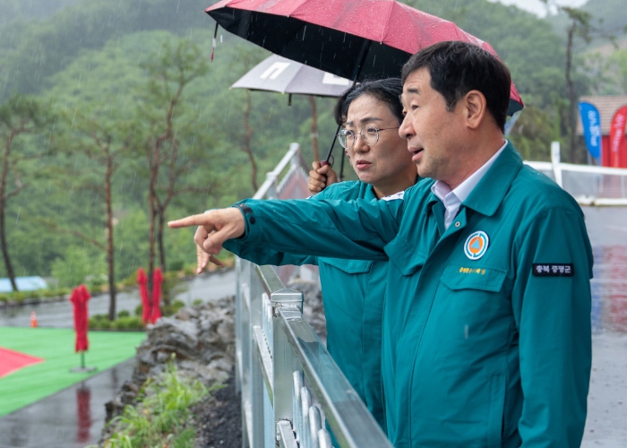 | ▲ 이재영 증평군수, 집중호우 대비 에듀팜특구관광단지(벨포레리조트) 특별점검 실시 |