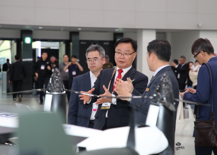 ▲ 홍남표 창원특례시장이 지난달 5월 9일 「2024 대한민국 드론 박람회」 참석해 관계자들로부터 설명을 듣고 있다. |