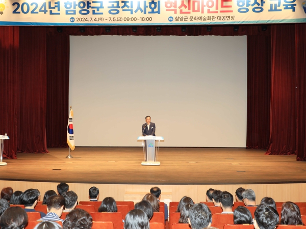 [뉴스서치] 함양군은 7월 4일과 5일 이틀에 걸쳐 문화예술회관 대공연장에서 공직자의 업무혁신과 조직문화 개선 등을 위한 ‘2024년 함양군 공직자 혁신마인드 교육’을 진행한다.
