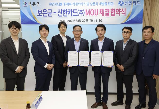 [뉴스서치] 보은군은 신한카드(주)와 20일 천연기념물(정이품송, 서원리 소나무) 후계목 거래서비스 및 상품화 개발을 위한 업무협약(MOU)을 체결했다.
