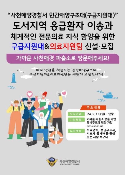 ▲ 사천해경“전문의료지원팀”신설에 따른 의료봉사자 모집 |