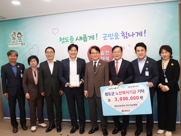김하수 청도군수는 “어려운 경제 여건에도 불구하고, 따뜻한 온정을 전달해 준 대남병원에 감사드리며, 기부해 주신 기금은 관내 노인복지 향상을 위해 소중하게 쓰겠다”라고 말했다.