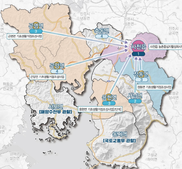 사업은 5개 읍·면[사천읍(농촌중심지활성화사업), 정동·곤양·곤명면(기초생활거점조성사업 1단계), 용현면(기초생활거점조성사업 2단계)]을 대상으로 2025년 협약체결 후 2029년까지 5년간 추진할 계획이다.