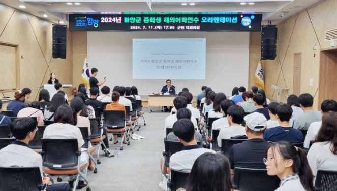 [뉴스서치] 경남 함양군의 대표적인 글로벌 인재육성 프로그램 중 하나인 함양군 중학생 해외어학연수의 출발을 앞두고 11일 오후 5시 군청 대회의실에서 학생과 학부모, 인솔자 등 70여 명이 참석한 가운데 사전 오리엔테이션이 열렸다.