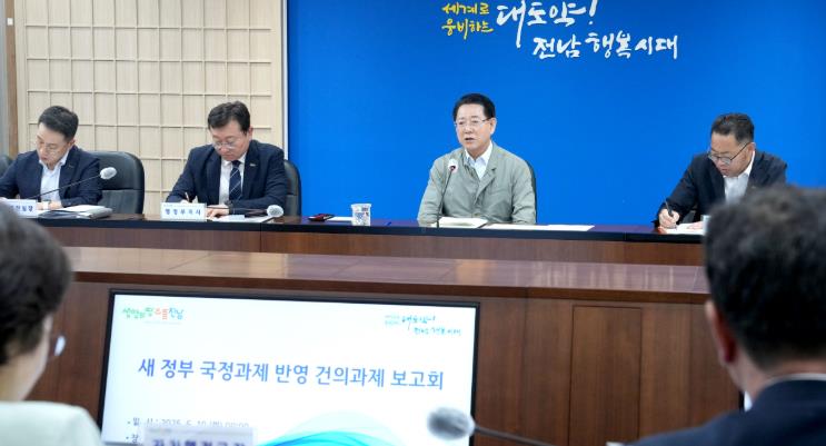 [뉴스서치] 전라남도는 10일 이재명 정부 출범에 발맞춰 ‘새 정부 국정과제 반영 건의과제 발굴 및 보고회’를 열어 솔라시도 AI에너지 신도시 등 도정 핵심현안과 제도개선 등 건의과제 반영을 위한 대응방향을 논의했다.