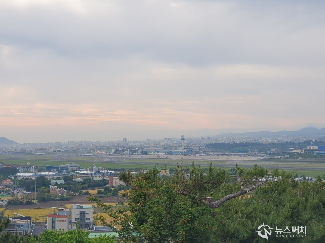 기자는 제주 앞바다의 모습과 비행기가 이착륙하는 제주국제공항의 모습을 한꺼번에 조망하면서 도두봉 정상에서 약 10분정도 휴식을 취하였다.