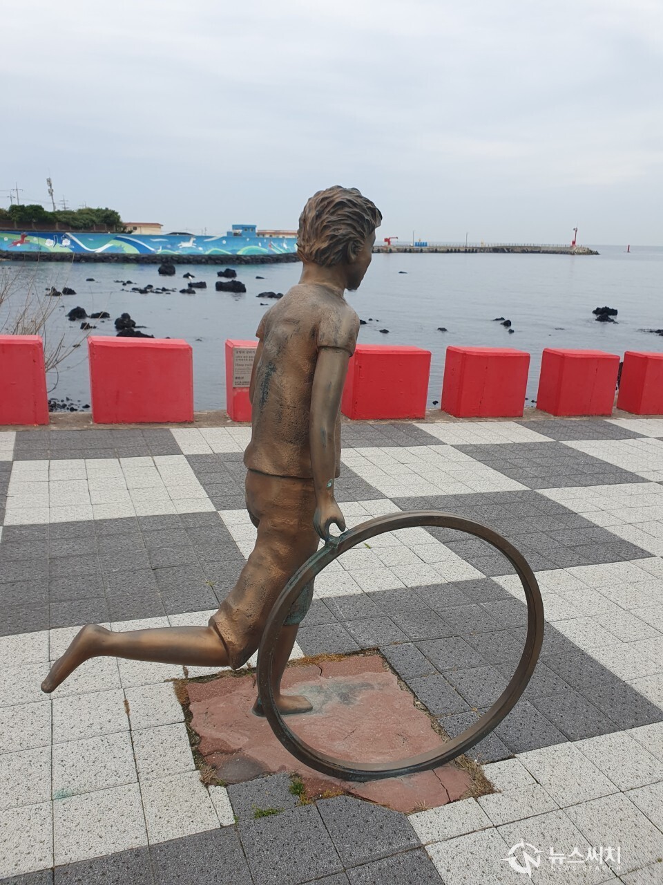 기자는 ‘어영공원’ 안에 있는 벤치에 앉아 한참 동안 파도가 출렁이는 제주 앞바다를 물끄러미 바라보았다. 어영공원에는 제주올레 17코스 중간스탬프가 비치되어 있다.