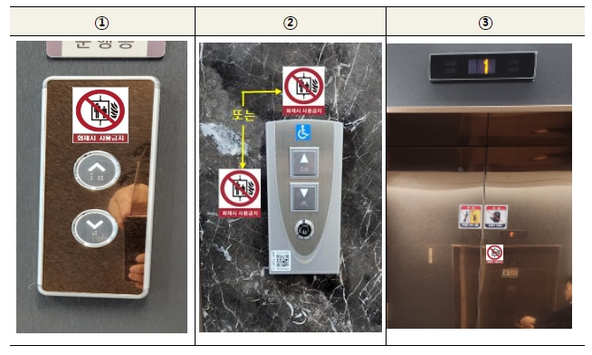 ▲ 화재 시 승강기 사용금지 표지 제작 및 부착안 |