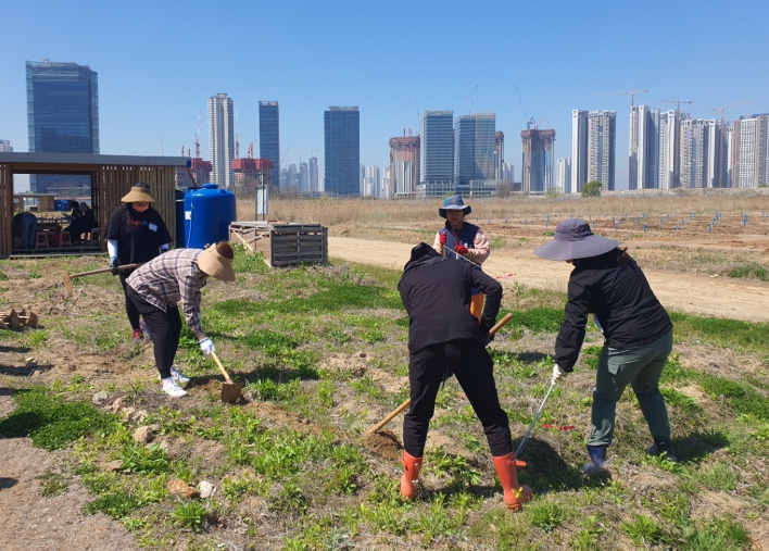 ▲ 도심 빈 공간을 활용한 도시농업(텃밭 가꾸기) 활동 |