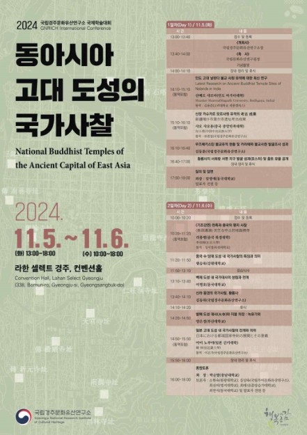[뉴스서치] 국가유산청 국립문화유산연구원 국립경주문화유산연구소는 11월 5일과 6일 경주 라한 셀렉트 컨벤션홀에서 '동아시아 고대 도성의 국가사찰'을 주제로 신라 왕경의 사찰과 동아시아 고대 도성의 사찰이 가진 특수성과 보편성을 비교 검토하는 국제학술대회를 개최한다.