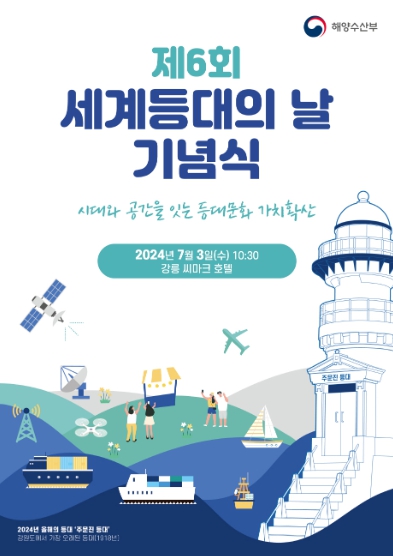 [뉴스서치] 해양수산부는 7월 3일 10시 30분부터 강원특별자치도 강릉시 씨마크호텔에서 ’시대와 공간을 잇는 등대문화 가치확산’이라는 주제로 ‘제6회 세계등대의 날’ 기념식을 개최한다고 밝혔다.