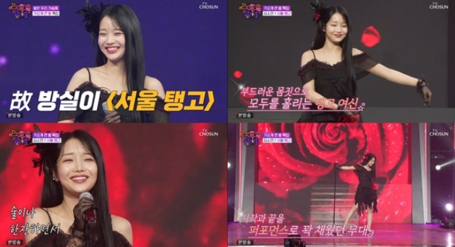 김소연이 준비한 무대는 방실이의 '서울 탱고'였다. 탱고 퍼포먼스를 준비한 김소연은 "오늘 (태진아) 선생님께서 퍼포먼스를 보신다고 하니까 잘 봐주세요"라며 필살 애교를 선보이기도 했다.