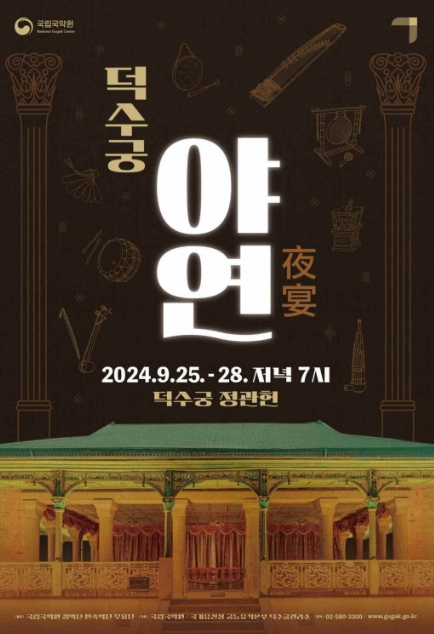 [뉴스서치] 국가유산청 궁능유적본부 덕수궁관리소는 국립국악원과 함께 오는 9월 25일부터 28일까지 4일간 오후 7시에 덕수궁 정관헌(서울 중구)에서 국악 공연 '덕수궁 야연(夜宴)'을 개최한다.