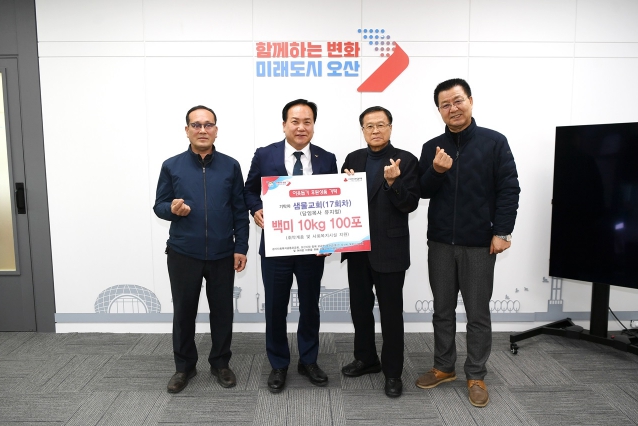 [뉴스서치] 오산시는 19일 오산샘물교회(담임목사 유지철)에서 봄철을 맞이해 취약계층 이웃들이 건강한 삶을 영위하기를 바라는 마음으로 백미 1,000kg(10kg*100포)을 기탁했다고 밝혔다.