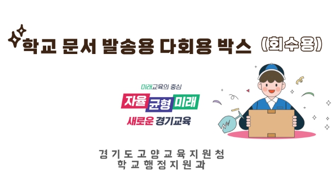 [뉴스서치] 고양교육지원청은 2024년 3월부터 시설관리직원이 없는 관내 73개교를 대상으로 교육지원청 문서수발함 내 문서 등을 학교로 배송해주는 서비스를 시행한다.