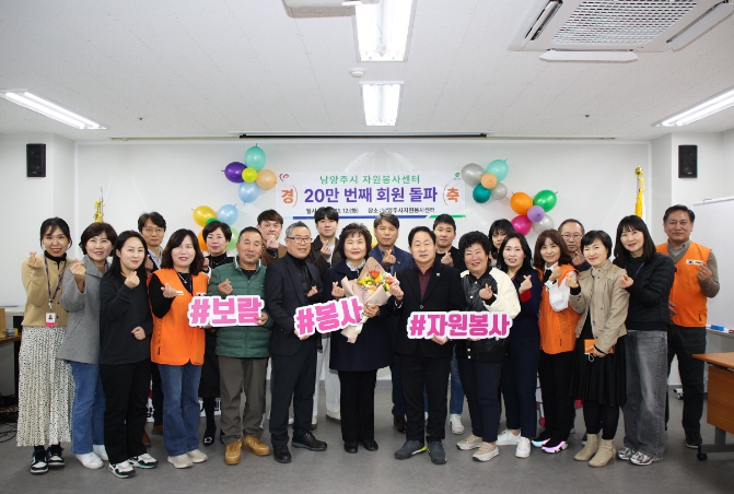[뉴스서치] 남양주시 자원봉사센터는 지난 13일 자원봉사자 회원 20만 명 돌파 기념 축하 행사를 개최했다.