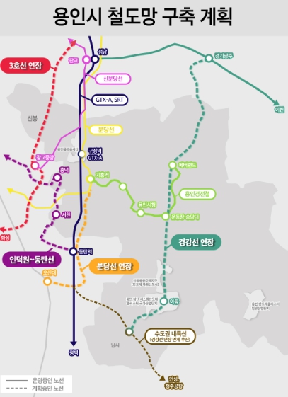 민선 7기 때인 지난 2019년 용인시와 수원시, 성남시가 제5차 국가철도망 구축계획에 포함하는 것을 목표로 사전 타당성 조사 용역을 실시하는 등 공동협력해왔지만 차량기지 부지 확보 문제를 해결하지 못해 사업 추진이 사실상 중단됐었다.