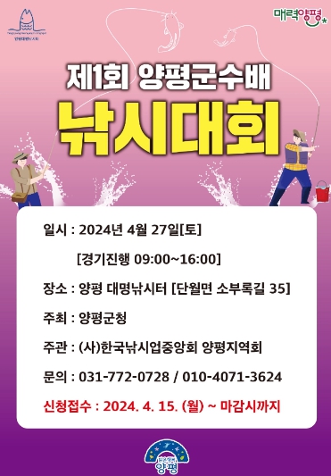[뉴스서치] 양평군은 오는 27일 단월면 대명낚시터에서 제1회 양평군수배 낚시대회를 개최한다고 밝혔다.