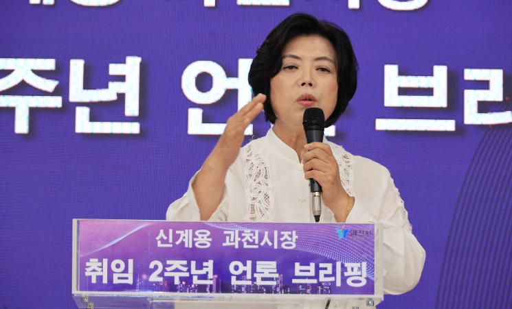▲ ‘민선8기 2주년 언론 브리핑’하는 신계용 과천시장 |
