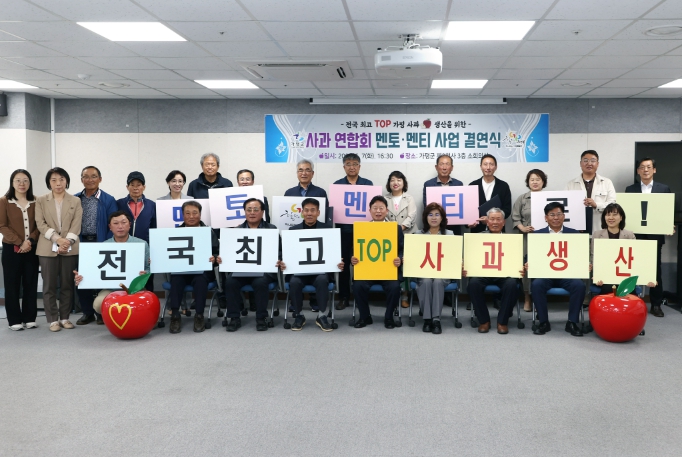 군에 따르면 지난 7일 전국 최고의 가평사과 생산을 위해 서태원 군수와 가평사과연합회 회원 등이 참석한 가운데 ‘전국 최고(탑) 가평사과 생산을 위한 멘토․멘티 결연식’을 개최했다. 이날 결연식은 가평사과연합회가 자체적으로 우수농가와 일반농가간 멘토·멘티를 맺어 고품질 재배기술을 주고 받기 위해 실시했다.