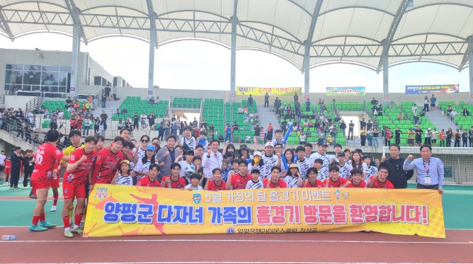 특히 양평FC는 경기일을 옥천면민의 날로 지정해 주민 단합을 이끌었으며 옥천면체육회, 옥천면이장협의회 등 옥천면 주요 기관단체 회원 및 주민들이 경기를 함께 관전했다. 5월 가정의 달을 맞아 특별 초청된 관내 다자녀 11가구도 경기를 함께 관전하며 승리의 기쁨을 나눴다.