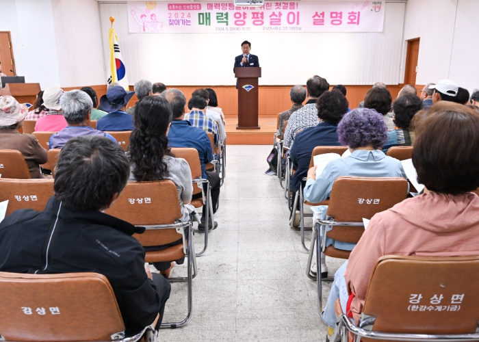 [뉴스서치] 양평군이 20일 강상면사무소 2층 대회의실에서 강상면민 60여 명이 참석한 가운데 ‘2024. 찾아가는 매력양평살이 5월 설명회’를 개최했다.