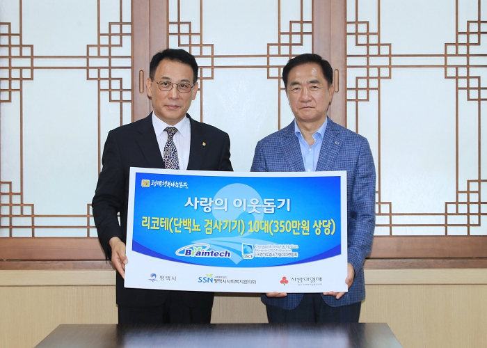 [뉴스서치] ㈜브레인테크는 지난 21일 리코테(단백뇨 검사기기)를 평택행복나눔본부에 전달했다.