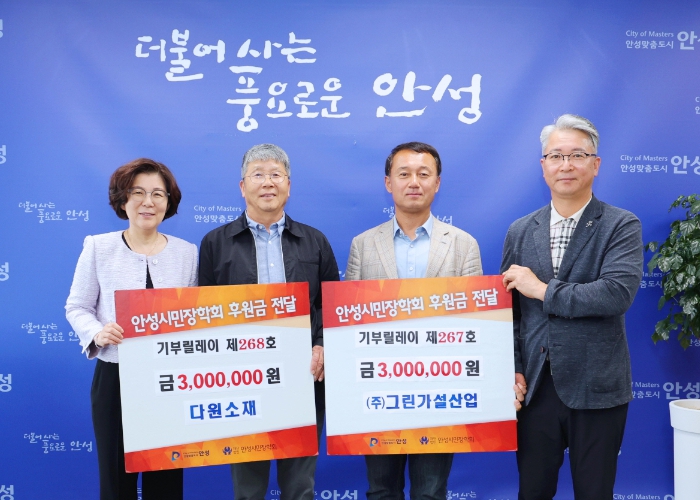 한편, 2011년 설립된 안성시민장학회는 그동안 지역 학생 3,532명에게 35억3천364만원의 장학금을 지급하는 등 지역사회 인재 양성을 위해 힘쓰고 있다.
