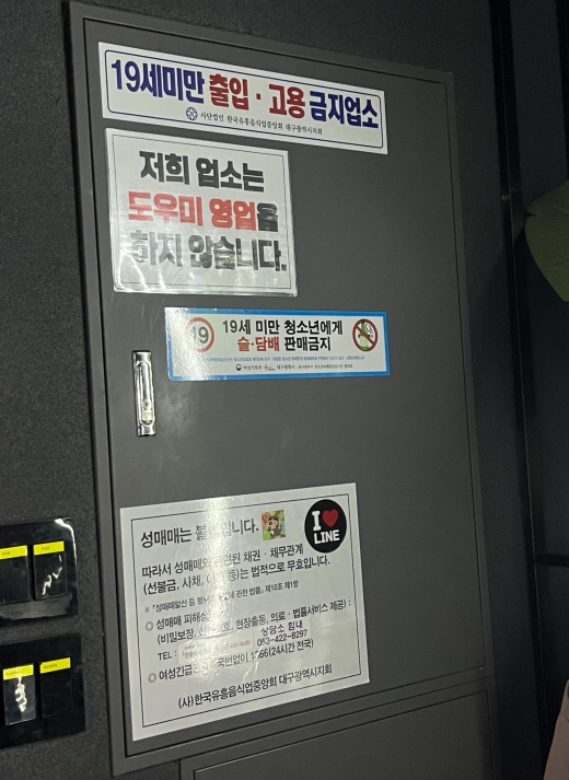한편, 2012년 8월부터 성매매 방지와 피해자 보호를 위해 ‘성매매방지 및 피해자 보호 등에 관한 법률’에 따라 유흥주점에 성매매 방지 안내 관련 게시물을 의무적으로 부착하도록 규정돼 있다.