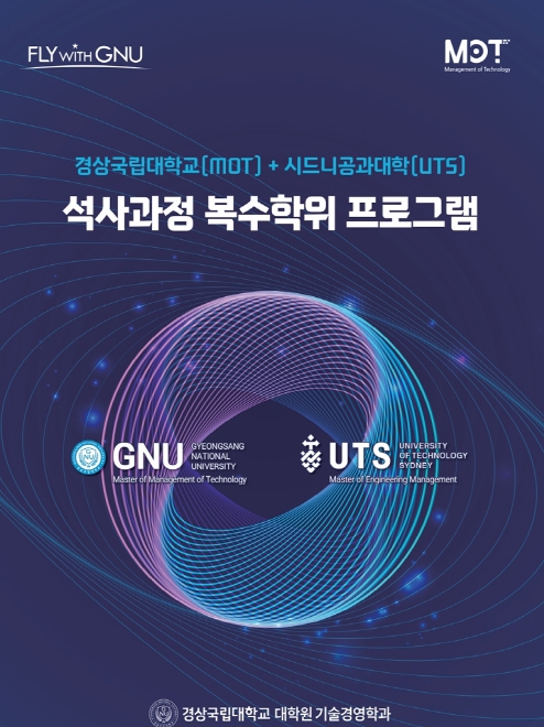 [뉴스서치] 경상국립대학교가 호주 시드니공과대학교(University of Technology Sydney, 이하 UTS)와 손잡고 글로벌 기술경영 전문인력 양성을 위한 석사 복수학위 과정을 본격 추진한다.