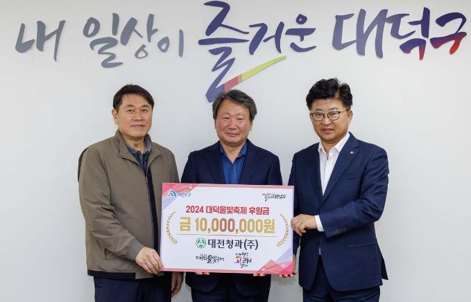 [뉴스서치] 대전 대덕구는 대전청과(주)(사장 송인석)로부터 ‘2024 대덕물빛축제’의 성공적 개최를 위한 후원금 1000만원을 전달받았다고 밝혔다.