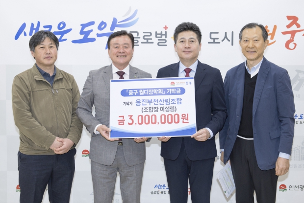 옹진부천산림조합 이성림 조합장은 “중구의 학생들이 경제적인 어려움으로 교육의 기회를 잃지 않기를 바라는 마음으로 기탁을 하게 됐다. 미래의 지역 인재 양성을 위해 도움이 됐으면 좋겠다”라고 말했다.