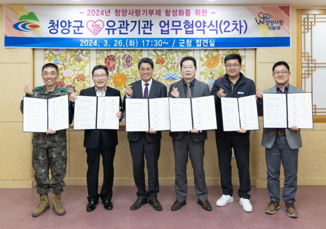 [뉴스서치] 청양군이 지난 26일 군청 접견실에서 군내 관계기관 6곳과 청양사랑기부제 활성화 협약을 체결했다.
