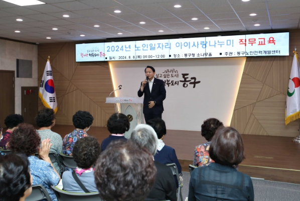 김찬진 동구청장은 “연일 계속되는 폭염으로 인해 일자리 사업에 참여하시는 어르신의 건강과 안전이 가장 크게 염려된다”며, “이번 직무교육을 통해 어르신들께서 안전하고 행복하게 일자리 활동을 하실 수 있길 바란다”고 말했다.