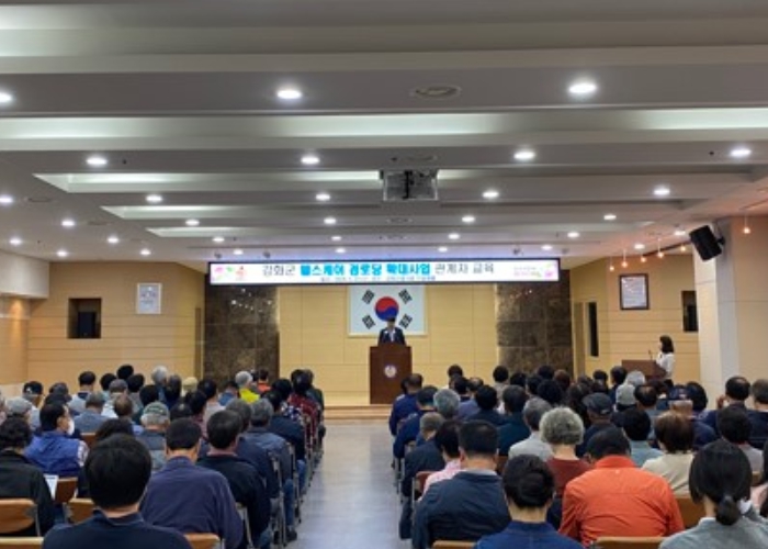 [뉴스서치] 강화군이 지난 22일, 군청 진달래홀에서 ‘헬스케어 경로당 확대 사업 관계자 교육’을 실시했다.