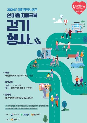 [뉴스서치] 대전 동구는 다음 달 1일 목척교 일원에서 치매 예방 및 치매 인식개선을 위한 ‘2024 한마음 치매극복 걷기행사’를 개최한다고 22일 밝혔다.