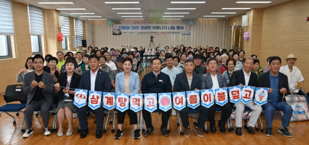 이날 행사는 대명3동 난타공연팀과 이정심 위원의 노래 공연을 시작으로 대명3동 지사협 활동보고 영상 시청, 후원품 전달, 기념촬영 등 다채롭게 열려 참석자들의 호응이 높았으며, ‘대명3동과 함께하는 삼천원의 행복’ 사업을 통해 모금된 복지재원으로 더운 여름을 맞아 폭염대비 보양식(삼계탕) 100그릇 및 시원한 냉방용품(여름이불) 100채를 지원해 훈훈함을 더했다.